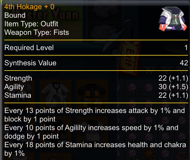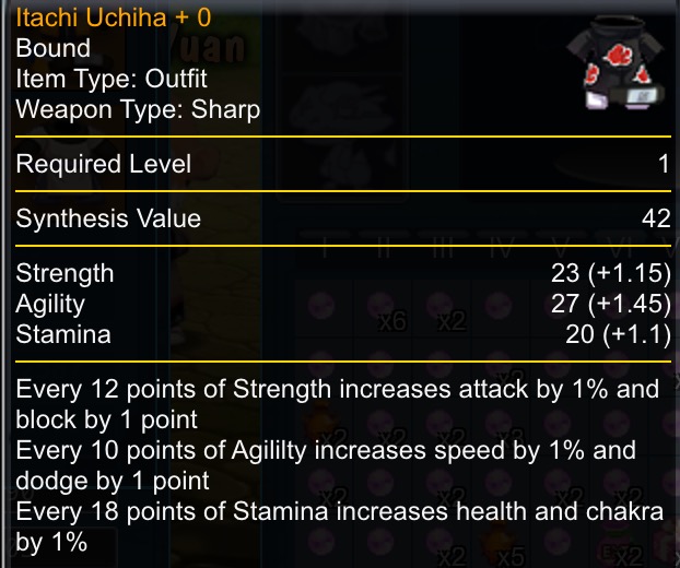 — it is recommended to start use higher quality of outfit with 8/9/10 agility and strength gains.